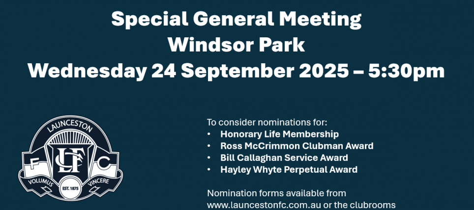 Life Members Ross McCrimmon Bill Callaghan Hayley Whyte Please email all nominations to generalmanager@launcestonfc.com.au by 5pm Wednesday 24 September 2025.